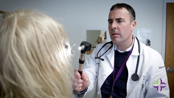 Dr. William Rabitaille examines a patient in the Gengras Clinic, a safety net clinic at Saint Francis.