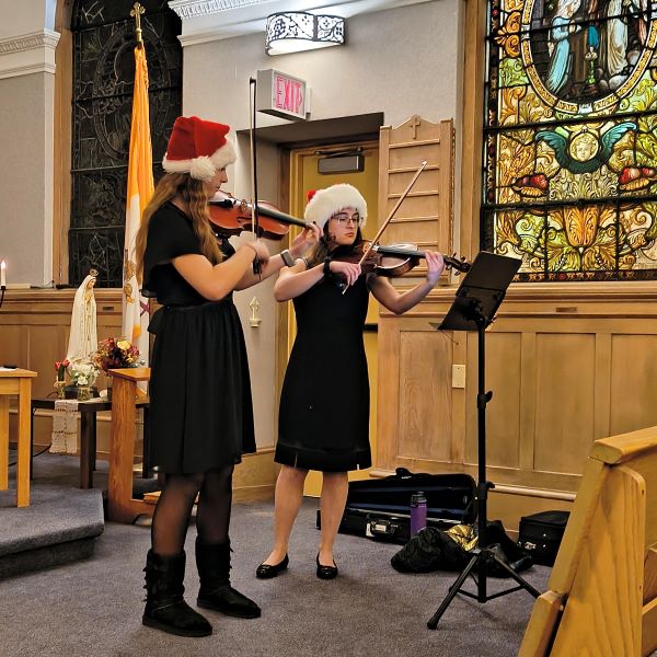 S&A Serenades, featuring violinists Amalia Alexander and Sophia Nicoescu, provided both the opening and closing musical selections in the chapel.