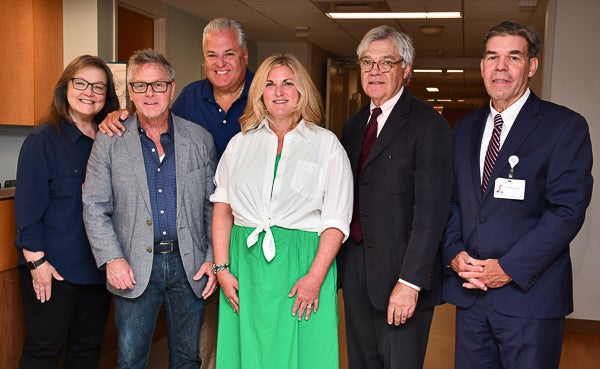 (Left to right) Mercy’s Laurie Loiacono, MD; Yee family friends Peter Picknelly and Tony Ravosa; Sarah Yee; Philip Glynn, MD; and Tim Stanton, Regional Vice President and Chief Development Officer, Trinity Health Of New England.