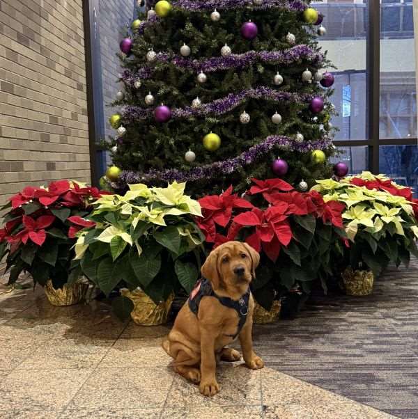 Gus Gus, Mercy’s therapy dog in training, was also on hand for the Gift of Light ceremony.