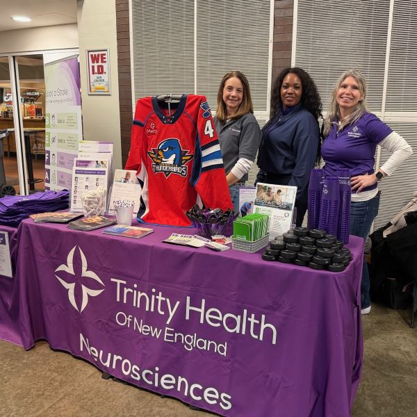 Members of Trinity Health Of New England's Regional Stroke and Rehabilitation Programs attended the Springfield Thunderbirds hockey game on January 9, using the opportunity to interact with fans and promote stroke awareness and education.