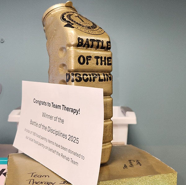 Both teams spent November collecting non-perishable food items to donate to the Food Pantry in support of the local community. While Team Therapy took the trophy away from Team Nursing this year, the friendly competition was a win for all, with 185 total items collected for donation, exemplifying living our Mission.