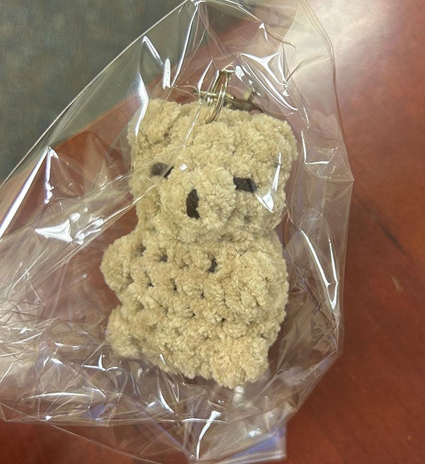 Chelsea Pham donated crocheted teddy bear keychains that will be included in comfort kits for children in the Emergency Department.