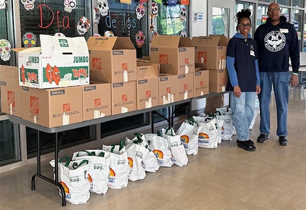 During the school’s annual family dinner, which serves as a warm celebration of community and connection, Thanksgiving boxes filled with holiday foods are distributed. After learning the school was only able to fill 20 boxes this year, the Milner family sought help to fill the usual 60 boxes. Thanks to many blessings and an outpouring of support from the community, the Milner family was able to help provide 94 families in the community with Thanksgiving meals. Monique, along with several members of her family, came together to raise funds and gather food to ensure every family received a box. They also volunteered at the school to get the food boxed and ready to take home.