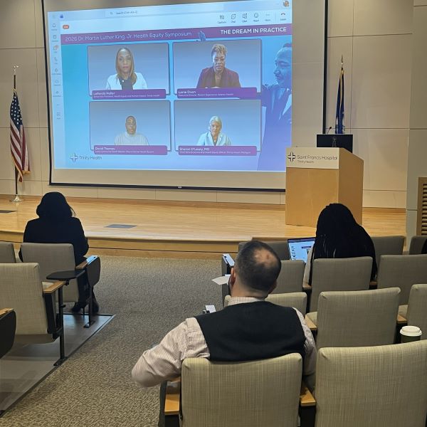 The 5th Annual Dr. Martin Luther King, Jr. Health Equity Symposium was held on January 19 across all Trinity Health Of New England ministries. The event brought together colleagues from Saint Mary’s Hospital, Saint Francis Hospital, Mercy Medical Center, Mount Sinai Rehabilitation Hospital, and Johnson Memorial Hospital for a systemwide watch party.