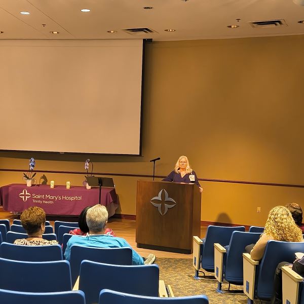Blue Christmas, observed during Advent, is a time to honor those experiencing grief and loss during the holiday season. At Saint Mary’s Hospital, the third annual Blue Christmas Memorial Event was held on December 22 in the Saint Mary’s Conference Center Auditorium. The service, held during the period of winter solstice, celebrates renewal and the return to light after a period of darkness.