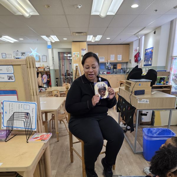 Cheryl Hilton, Regional Manager of Community Health & Well-Being, reads "Glow" by Ruth Forman to students at the Waterbury YMCA.
